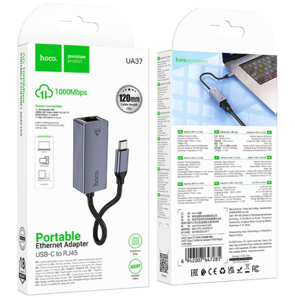 Adaptador TIPO C a Red Gigabit HOCO